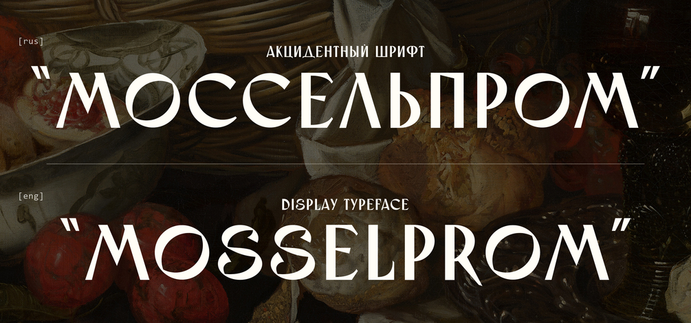 Mosselprom is a bold display typeface inspired by the world of Soviet advertising.